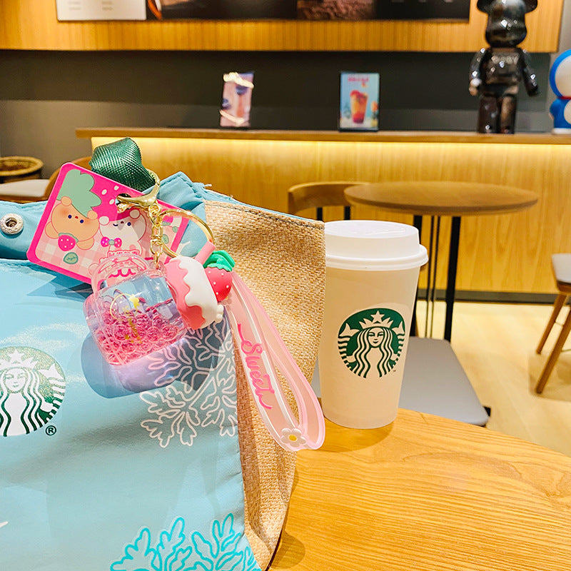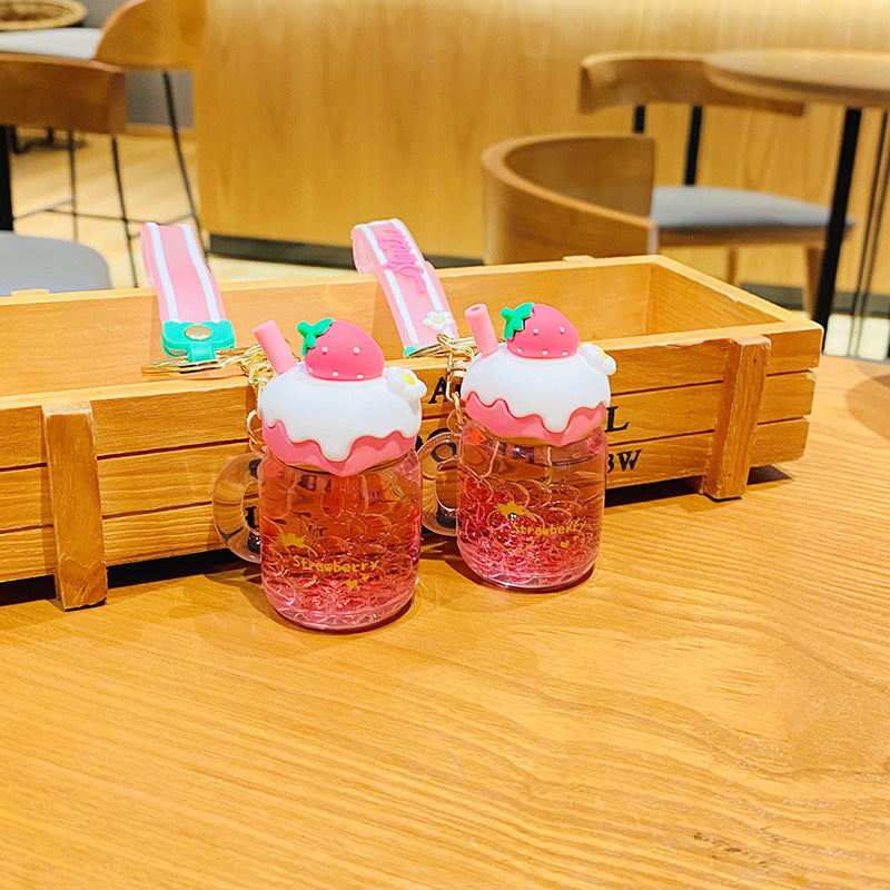 Creative Strawberry Cream Fruit Jar Girl Heart Keychain Automobile Hanging Ornament Exquisite