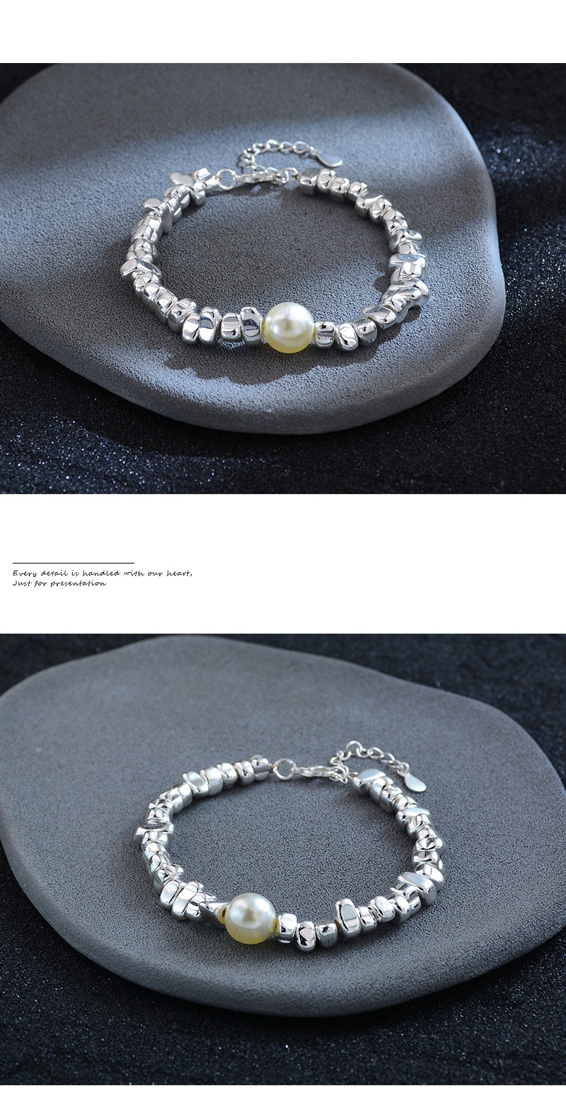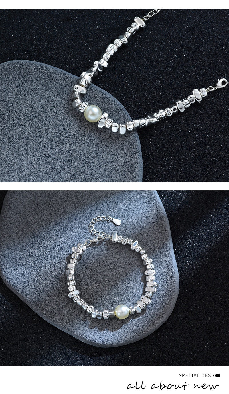 Irregular Silver Triangle Pearl Bracelet