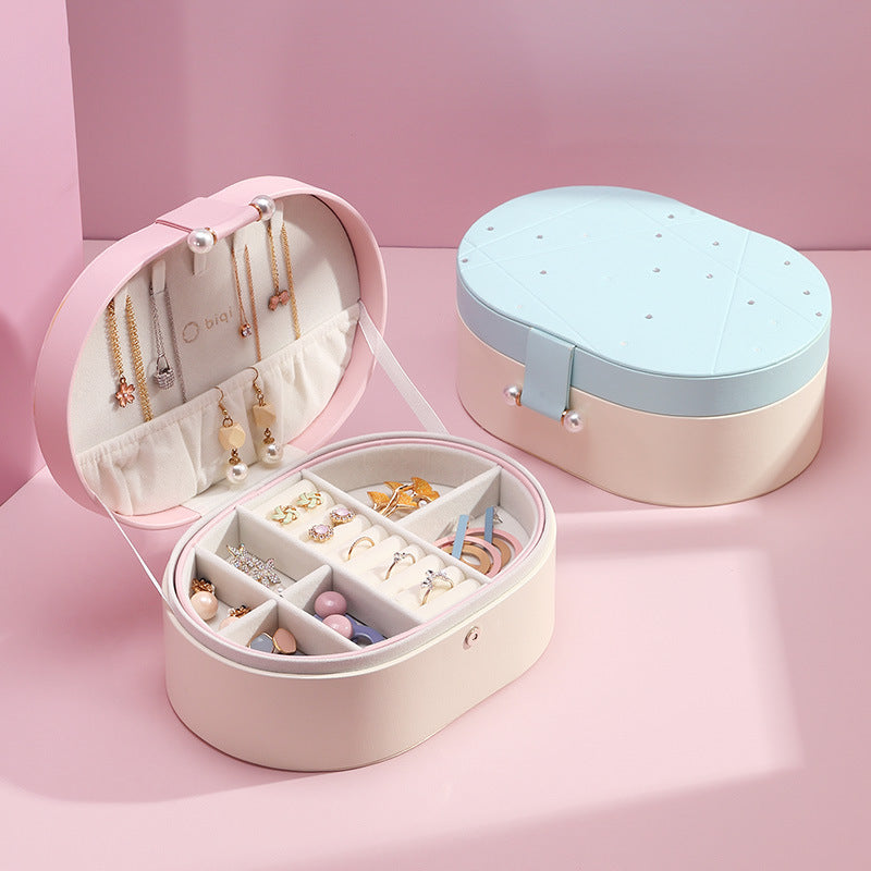 With this portable box, travel will no longer be afraid of jewelry being crushed. The design is unique, practical and beautiful. The jewelry box has 2 storage drawers, enough to store rings, earrings and necklaces, bracelets and watches to display your precious jewelry.